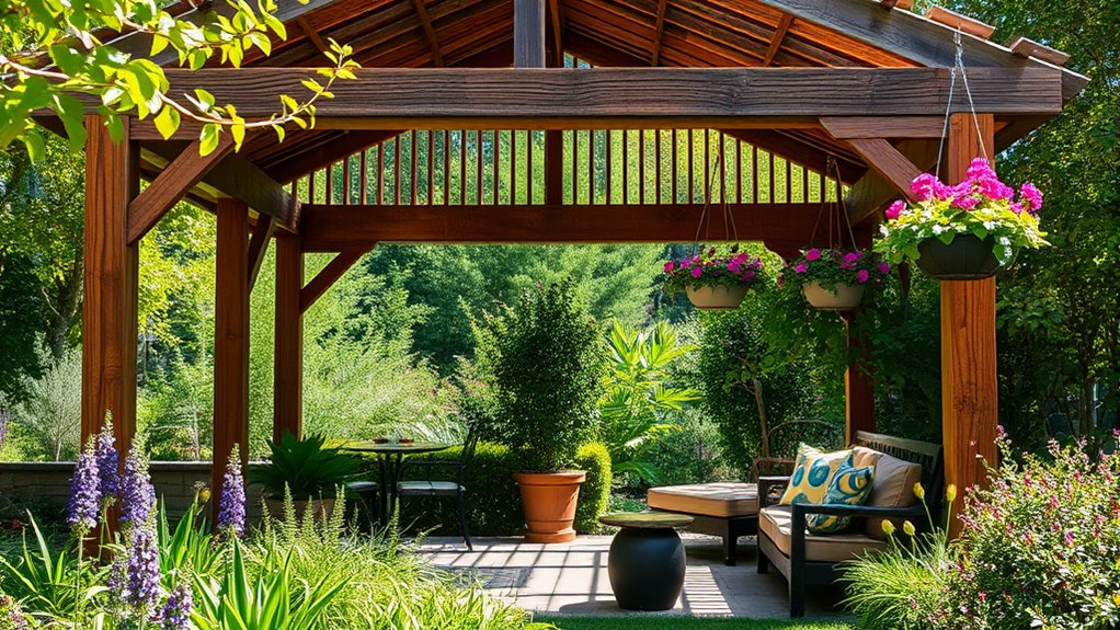 While many gardeners seek to enhance their outdoor spaces, opting for reclaimed wood gazebos offers an eco-friendly solution that balances beauty with sustainability. These structures embody reclaimed aesthetics, showcasing the character and charm of repurposed materials. By choosing reclaimed wood, you not only create a focal point in your garden but also promote sustainable sourcing, preventing deforestation and reducing waste.