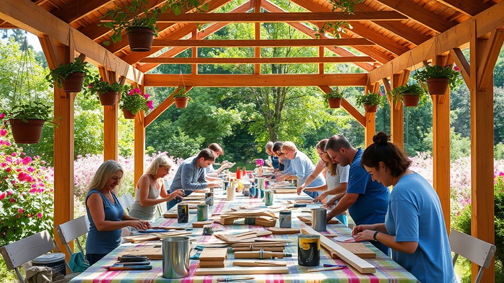 Hosting a weekend workshop for DIY home improvements in your gazebo is a fantastic idea! Start by choosing a spacious gazebo to accommodate tools and materials. Gather essential tools like drills and levels, and outline a flexible schedule that allows for breaks and idea sharing. Pick project ideas suited for all skill levels, like birdhouses or garden benches, for an enjoyable experience. By focusing on safety and creating a welcoming atmosphere, you’ll encourage creativity and collaboration—there’s plenty more to explore!