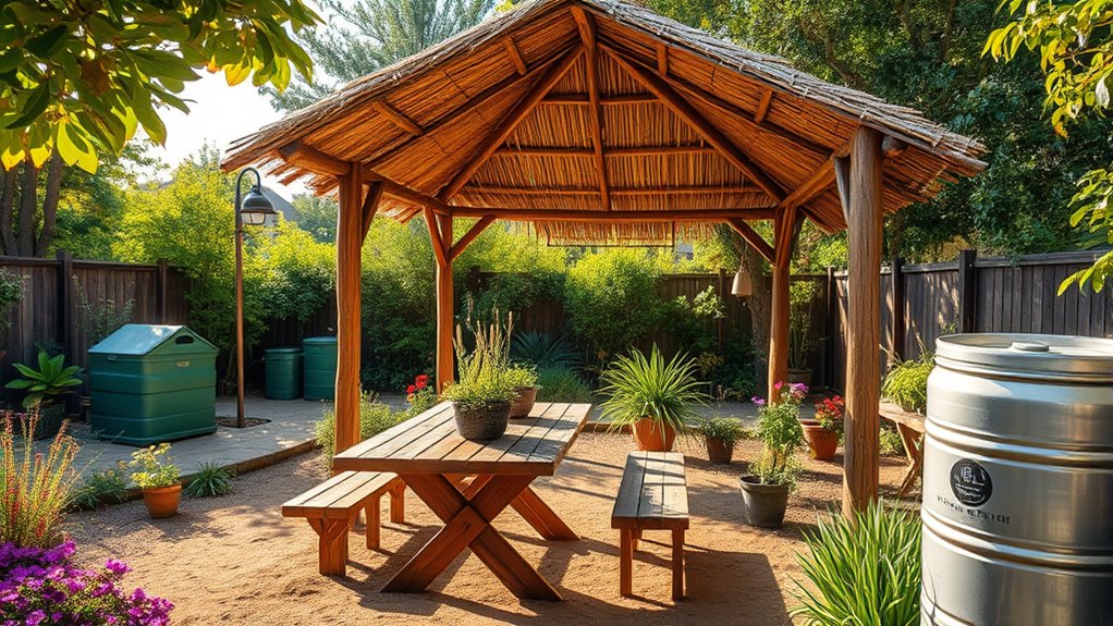 When you’re planning your gazebo, choosing sustainable materials can make a significant impact on your zero-waste lifestyle. Opt for reclaimed wood or bamboo for your structure; these materials not only reduce waste but also add a unique charm. Consider incorporating sustainable furniture made from recycled or eco-friendly materials to create a cozy atmosphere.